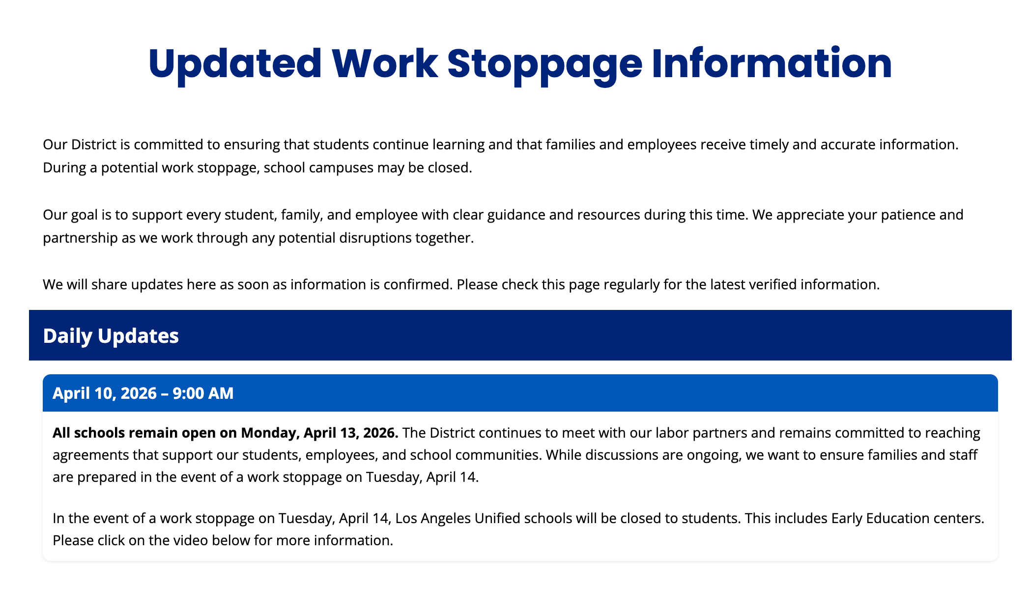 For more updates on the stoppage information, please check: https://schoolupdates.lausd.org/